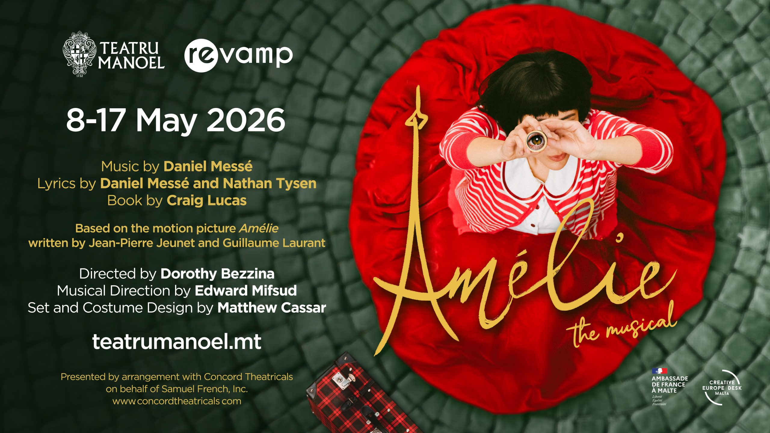 Amélie – The Musical is a whimsical and heartwarming stage adaptation of the 2001 French film directed by Jean-Pierre Jeunet. Set against the vibrant backdrop of Paris, it tells the story of Amélie Poulain, a shy but imaginative young woman who secretly improves the lives of those around her while grappling with her own journey toward happiness. Featuring a book by Craig Lucas, with music and lyrics by Daniel Messé and Nathan Tysen, this musical brims with quirky characters and stunning visuals, capturing the magic of small acts of kindness and the power of human connection. Brought to life under the direction of Dorothy Bezzina and musical direction by Edward Mifsud, Amélie invites audiences into a world where the extraordinary hides within the ordinary, and dreams are always within reach.